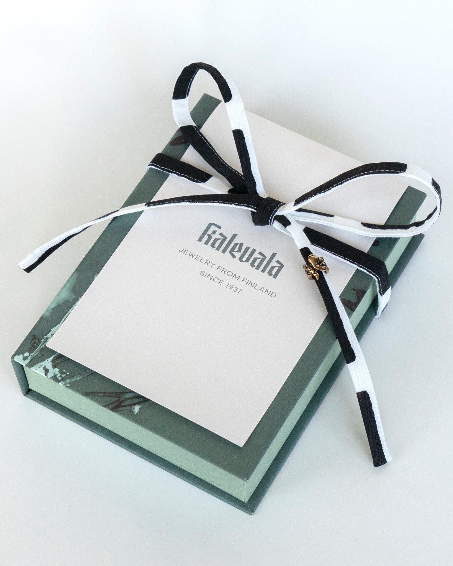 1937年の創業以来、カレワラは一貫してフィンランド国内でジュエリーを手作業で生み出してきました。そうした歴史の中で、サステナビリティはブランドの核となる価値観のひとつです。首都ヘルシンキにあるモダンな技術と伝統的な職人技を融合した自社工房は、風力をはじめとする再生可能エネルギーによって稼働しており、排水処理設備も工房内に完備。また、製作に用いられる貴金属は、最大で100%リサイクル由来の素材を採用しています。
