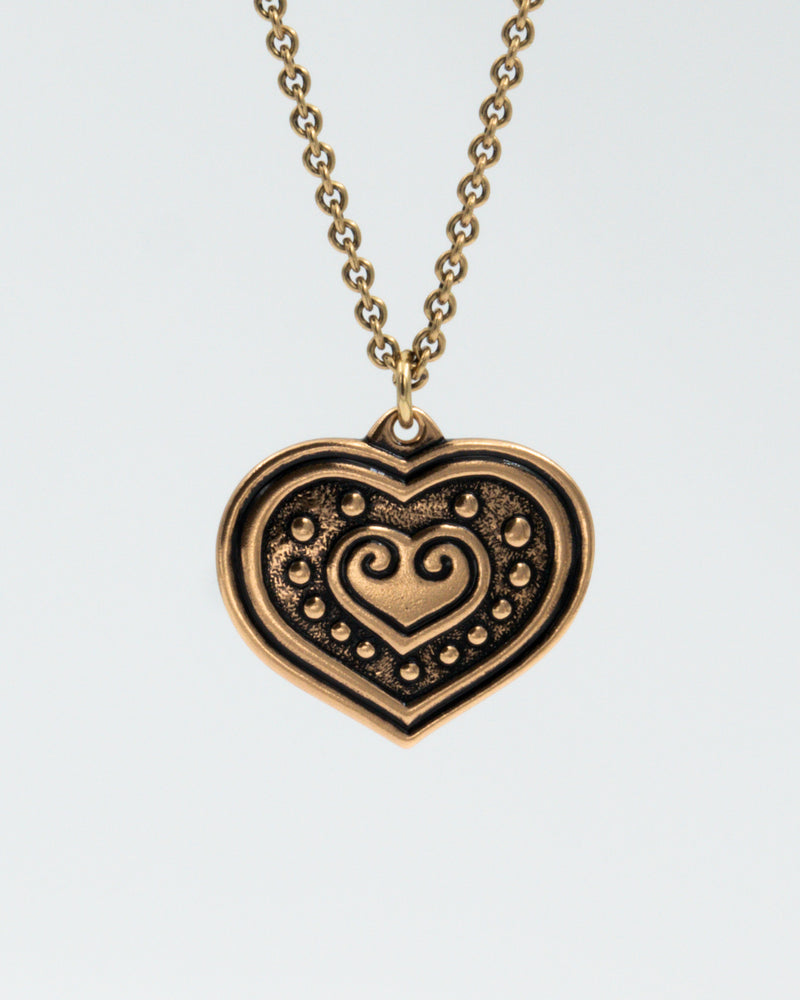The message of the heart is timeless and universally understood. The prototype of this little heart pendant dates back to the prosperous Viking Age. The Eura Heart motif has been part of Kalevala jewelry range since the 1950s. Width 32 mm, the reverse side unpatterned. Anchor chain 70 mm, spring ring clasp.