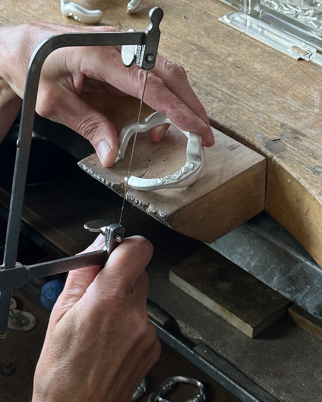 Jokainen Männyt-koru tehdään suomalaisena käsityönä 100 % kierrätetystä hopeasta, kullasta tai osittain kierrätetystä kullanhohtoisesta pronssista.