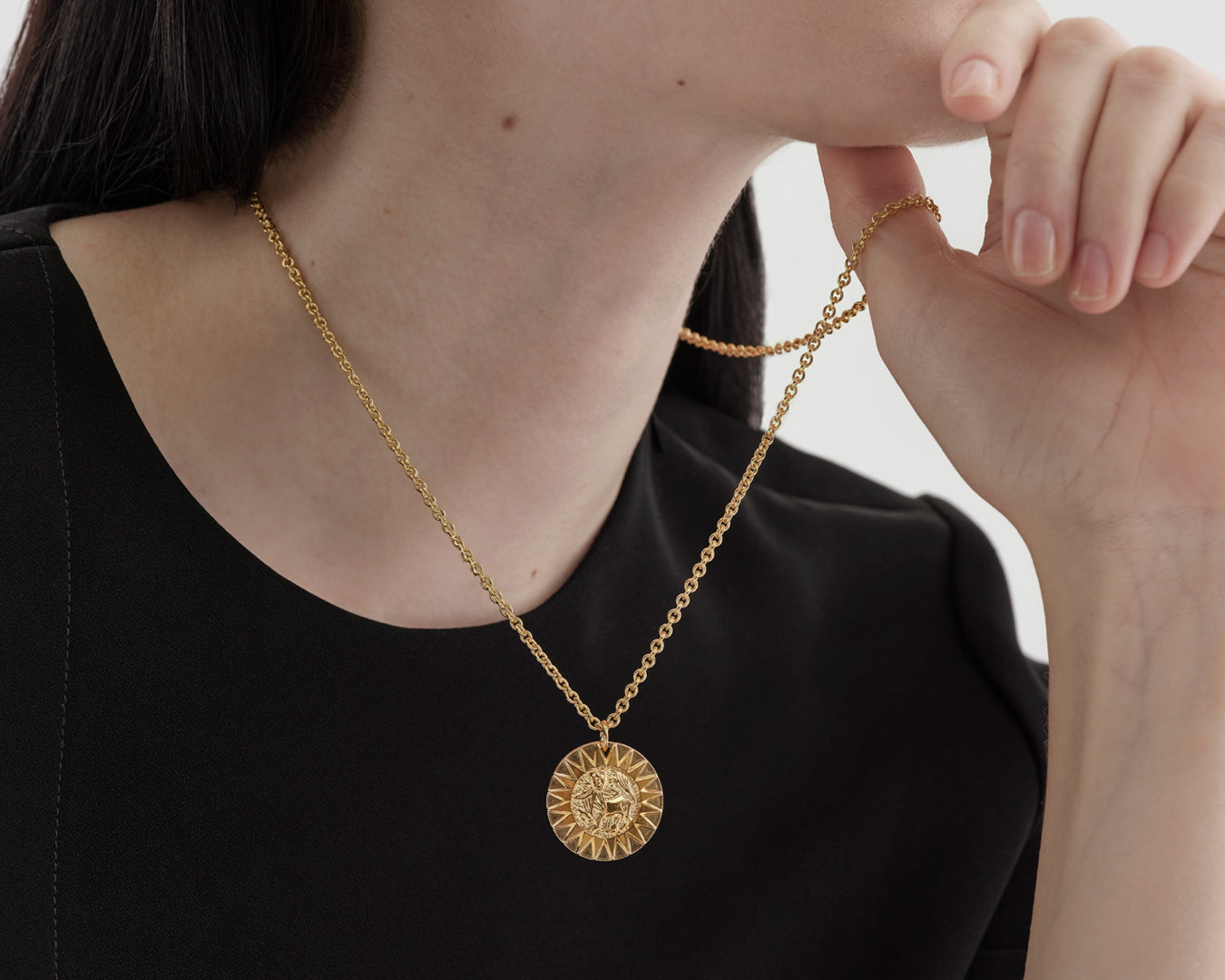 Eksoottisempiakin eläimiä kuvaavia koruja on löytänyt tiensä tänne pohjolan perukoille. Halikon Joensuussa paljastui maan povesta kevätkynnön yhteydessä vuonna 1887 varhaiskeskiaikainen hopea-aarre, johon kuuluvan ristiriipuksen ketjuun oli kiinnitetty pyöreä pyhäinjäännösrasia. Rasian arvokasta sisältöä vartioi sen kanteen ikuistettu uljas, tuuheaharjainen leijona. Leijona valittiin Kalevala Korun 60-vuotisjuhlakorusarjan aiheeksi. Korusarja sai nimen Aurinkoleijona. Tänä päivänä tuttu Aurinkoleijona koristaa pronssisia, hopeisia ja kultaisia Amuletti-riipuksiamme. Kanna Aurinkoleijonaa – saat leijonan voiman ja rohkeuden.