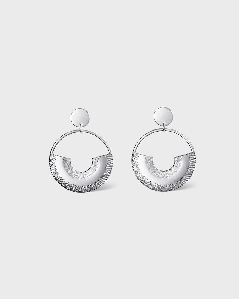Näyttävät mutta ihastuttavan kevyet hopeiset Kaaria-korvakorut sopivat tilanteeseen kuin tilanteeseen. Tappikiinnitys. Kaaria-korvakorut saatavissa myös pronssisina.