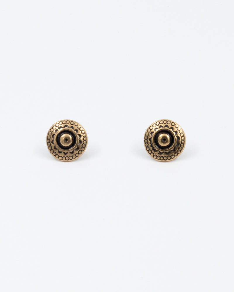 Pyöreät, aavistuksen kuperat korvakorut on suunnitellut Börje Rajalin 1960-luvulla. Koristeaiheen mallina on ollut roomalaisaikaisen pronssisoljen yksityiskohta. Halkaisija 12 mm. Tappikiinnitys, tappi ja taustanasta hopeaa.