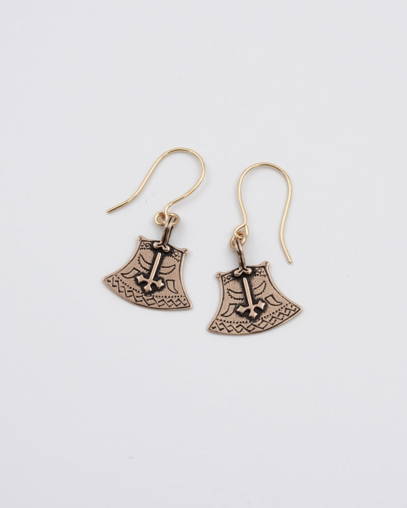 Pidetty Kuusamon kirves -korvakorut pieni pronssi