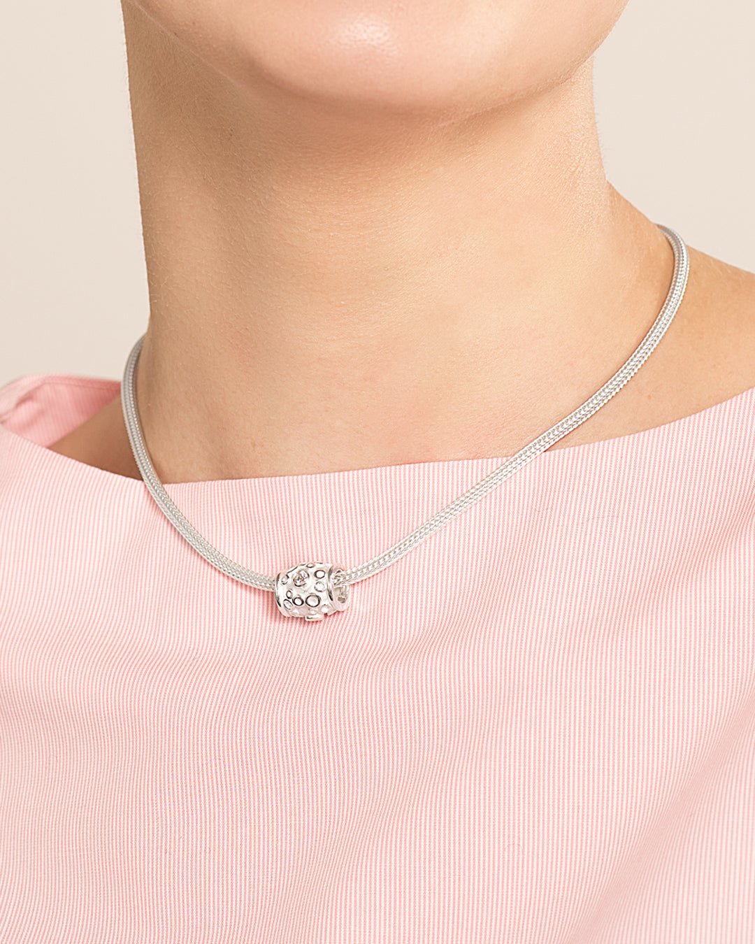 この繊細かつ強力なシルバーペンダントは、金細工職人でありデザイナーのTaru Harmaala Chaloffにより2018 年にデザインされました。支援対象はEnsi- ja turvakotien liitto です。
