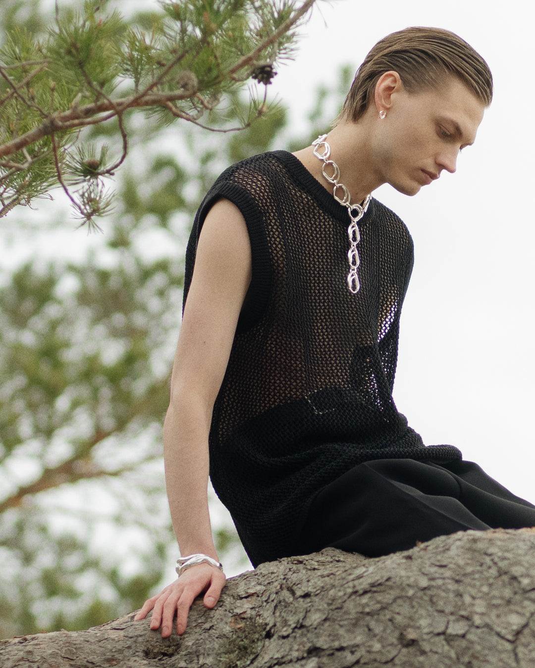 「ジュエリーが皮膚や体の一部に溶け込み、人の一部になっていくのと似ています。Männytコレクションのジュエリーは、性別に関係なく、すべての人を対象としています」と ワフィンは語ります。