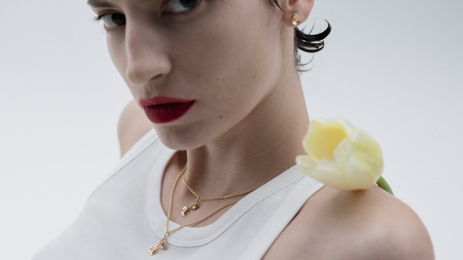 ファッションデザイナーのアンニ・ルートゥは自身の名を冠したブランドで、クラシックアートとバレエの感性を表現しています。カレワラのためにデザインした、アンニの初のジュエリーラインとなる「ミッドサマーナイトローズ」も、同じ感性を放ち、デザイナーのビジョンと力強いデザイン言語が立体的に表現された、複雑なディテールにあふれる作品です。
