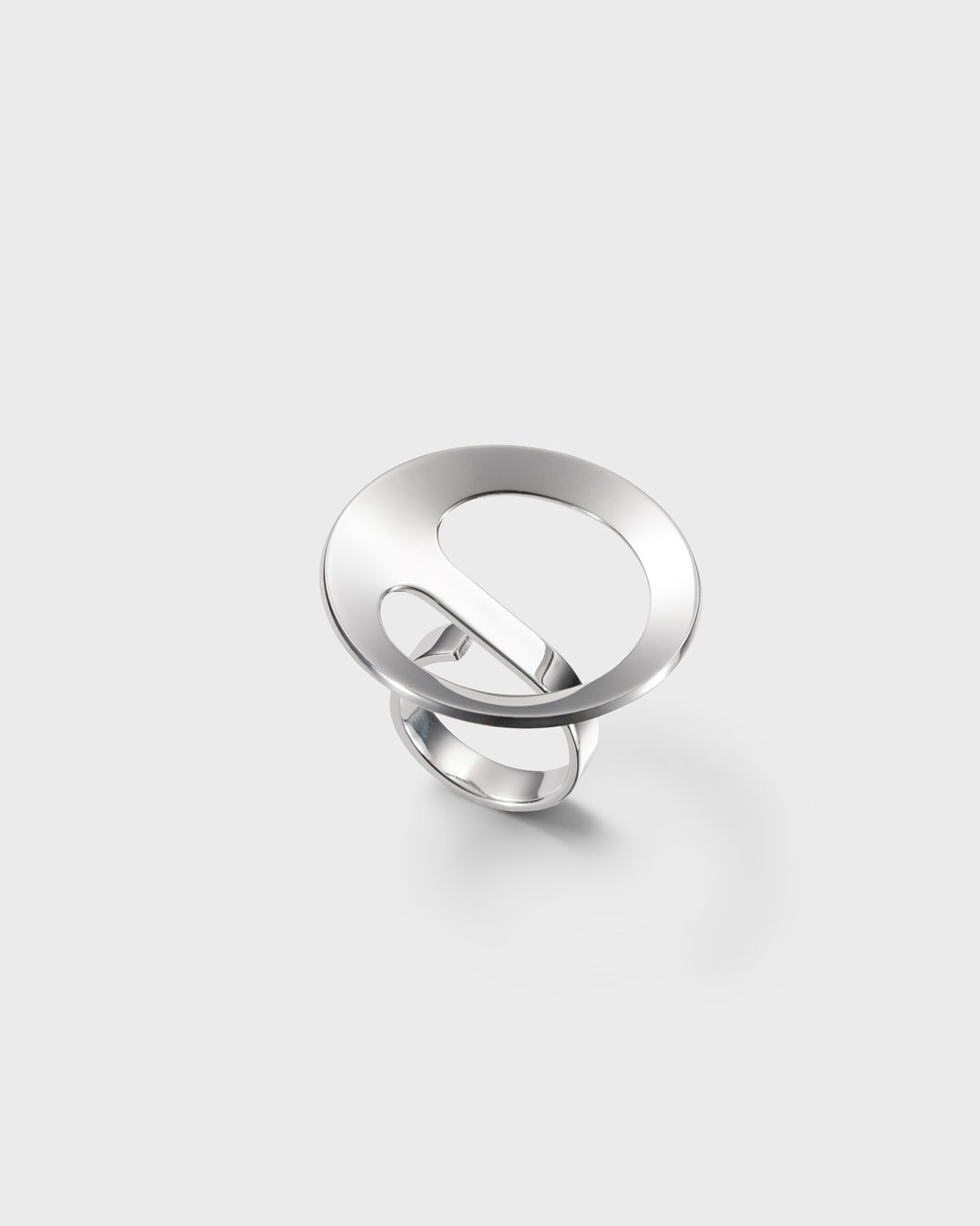 光と影の魅力的な遊びに魅了される、未来的なアーチと鏡のように輝くシルバーの表面を持つ注目のリング。1960年代にパウラ・ハイヴァオヤがデザインしたこのリングは、芸術と現代のフィンランドデザインのファンに訴えかけます。