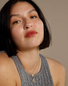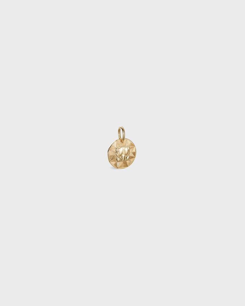 Pohjankarhuアムレッティゴールドミニチャームは、モチーフである力強い物語や遠い過去の信仰などのディティールが魅力的なデザインで、小ぶりで軽いジュエリーがお好きな方に最適です。ペンダント部分の裏側は少し凹んでおり、刻印はできません。本品はチェーンがふくまれていません。別売のゴールドのアンカーチェーンやオーバルアズキチェーンと組み合わせて着用ください。