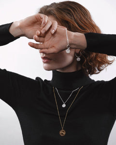 Taikalintuネックレスは、モチーフの力強い物語や遠い過去の信仰などのディティールが魅力的なデザインで、小ぶりで軽いジュエリーがお好きな方に最適です。チェーンは40㎝、45㎝、50㎝に調整可能。他のアムレッティネックレスとの重ね付けもお楽しみいただけます。ペンダント部分の裏側は模様がなく刻印も可能です。付属のエクステンションチェーンを付けると55㎝または60㎝まで伸ばすことができます。チェーン本体とエクステンションチェーンのいずれも、留め具はスプリングリング・クラスプ式です。