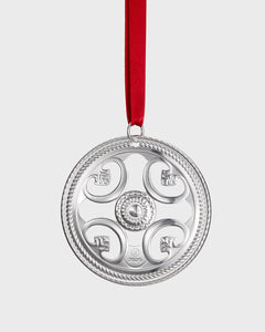 2025年のカレワラ・クリスマスオーナメントは Räisälä Koru(ライサラ・コル)=「ライサラジュエリー」をモチーフにしています。これは、ライサラのTiuri(ティウリ)という土地で発見された、精緻なパルメット文様で装飾された銀製の留め具に基づいています。この装飾品は東方由来のもので、12世紀に遡るとされています。