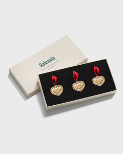 Euran sydän(エウラン・スュダン)=「エウラのハート」クリスマスオーナメントセットには、Euran sydänのオーナメントが3点含まれています(幅32mm)。これらは2024年のEuran sydänクリスマスオーナメントよりも小さめのサイズです。裏面は平らで模様が施されています。セットはギフトボックス入りでお届けします。数量限定生産です。