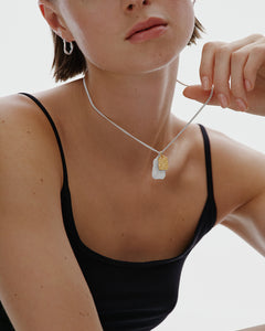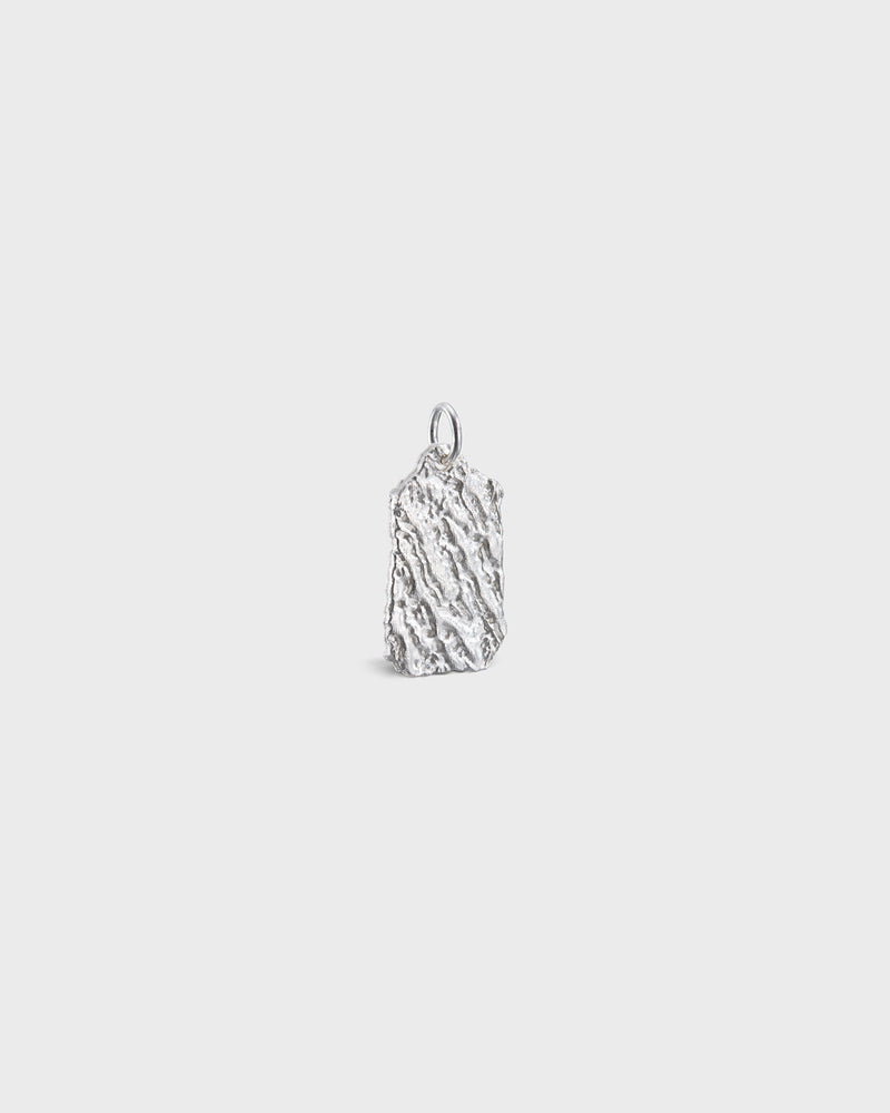 シンプルなシルバープレートに、お好きなメッセージを刻印できます。裏面はItuコレクションならではの有機的でナチュラルな質感が表現されています。お好みのチェーンに通してお楽しみいただけます。