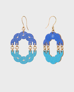 Vastuullisesta kotimaisesta koivuvanerista tehdyt korvakorut on värjätty molemmin puolin, nurja puoli on kuvioimaton. Vaneriosia yhdistävät renkaat ovat pronssia, koukut kullattua hopeaa.