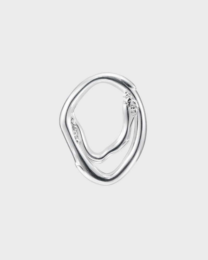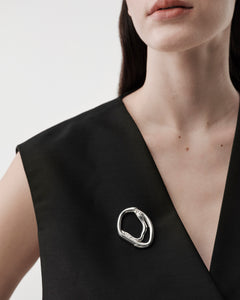 Männyt ブローチは自然で柔らかく波打つラインが特徴です。輝くシルバーの表面と粗いディテールが対話することで、魅力的なコントラストを生み出しています。ブローチの裏側は空洞になっており、ステンレス製のピンが付いています。