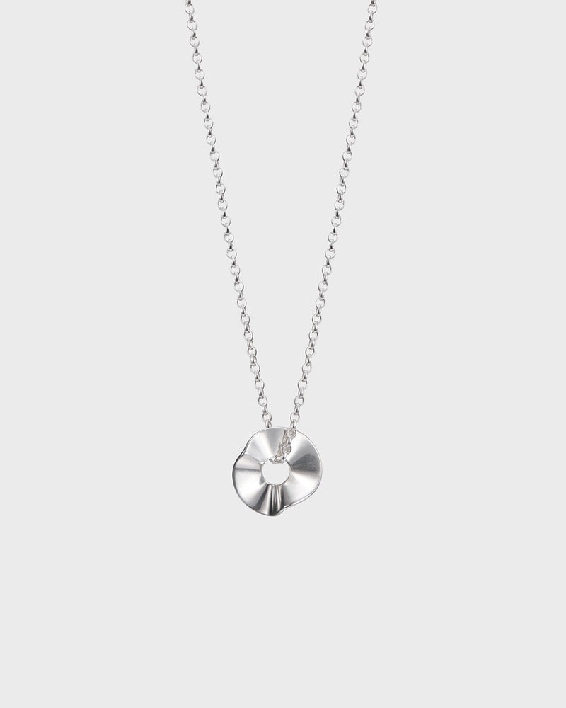 Vetovoima(ヴェトヴォイマ)ペンダントは、日常の装いから特別なシーンまで、コーディネートにさりげない上品さを添えるエレガントなアクセント。惹きつける魅力を備えた、機知に富んだデザインです。直径16mmのラウンドペンダントは、なめらかに波打つフォルムが特徴で、きらめくシルバーの表面に光と影の表情を生み出します。チェーンはオーバルアズキチェーンで、長さは42/45/50cmに調整可能。留め具はスプリングリング(丸カン)タイプです。チェーンはペンダントに固定されておらず、トップの中を自由に通る仕様となっています。ブロンズタイプもご用意しています。